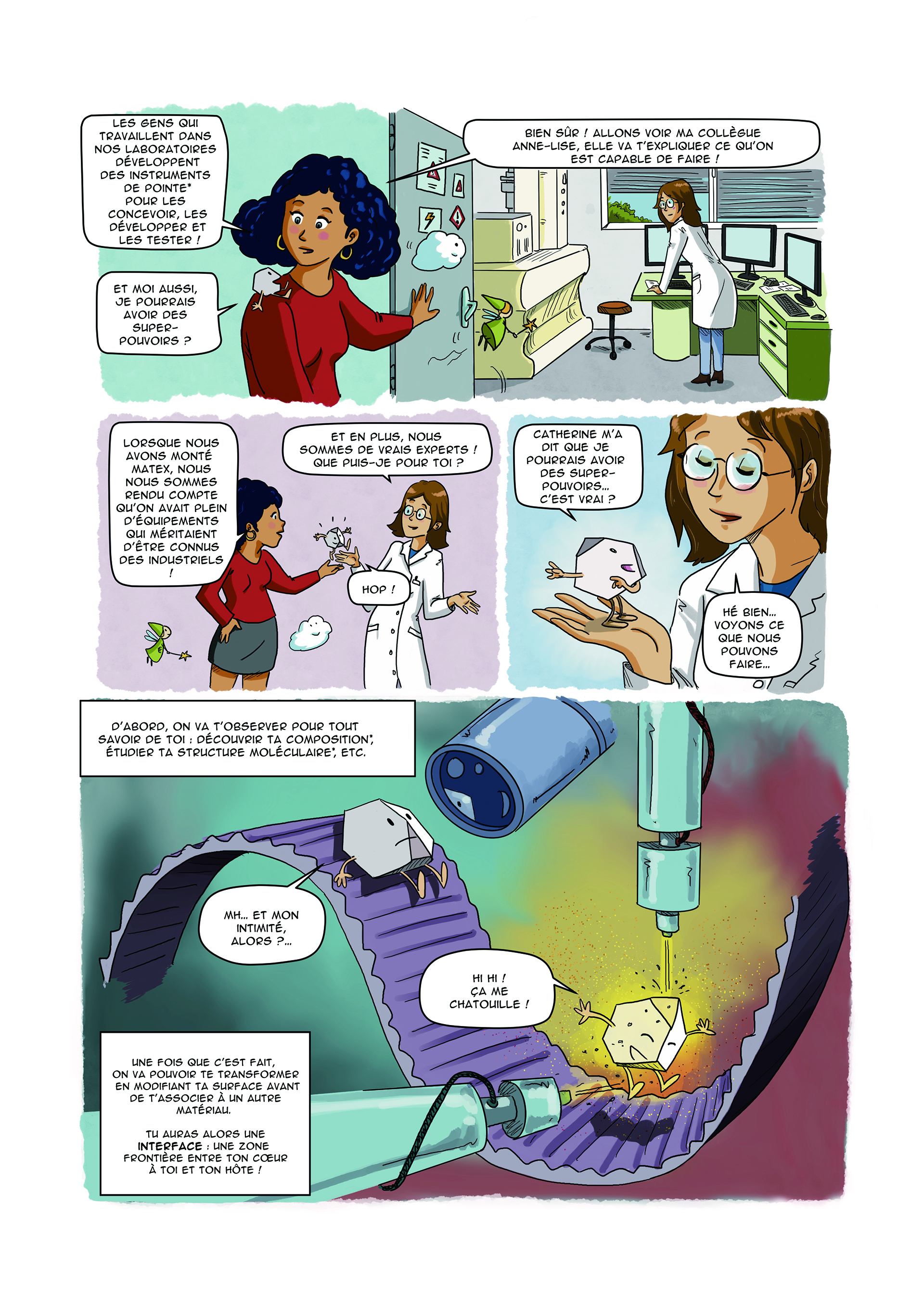 Curieux, il pose plein de questions pour comprendre ce qu’il fait là et va partir découvrir les différents aspects de la recherche aujourd’hui, à l’aide des responsables du projet. En plus de découvrir les nombreux instruments utilisés par les scientifiques, il va faire la connaissance de Savoir et Nancement (la Région Centre-Val de Loire), se promener dans les laboratoires en Centre-Val de Loire et rencontrer tous les acteurs de la recherche et les partenaires industriels.